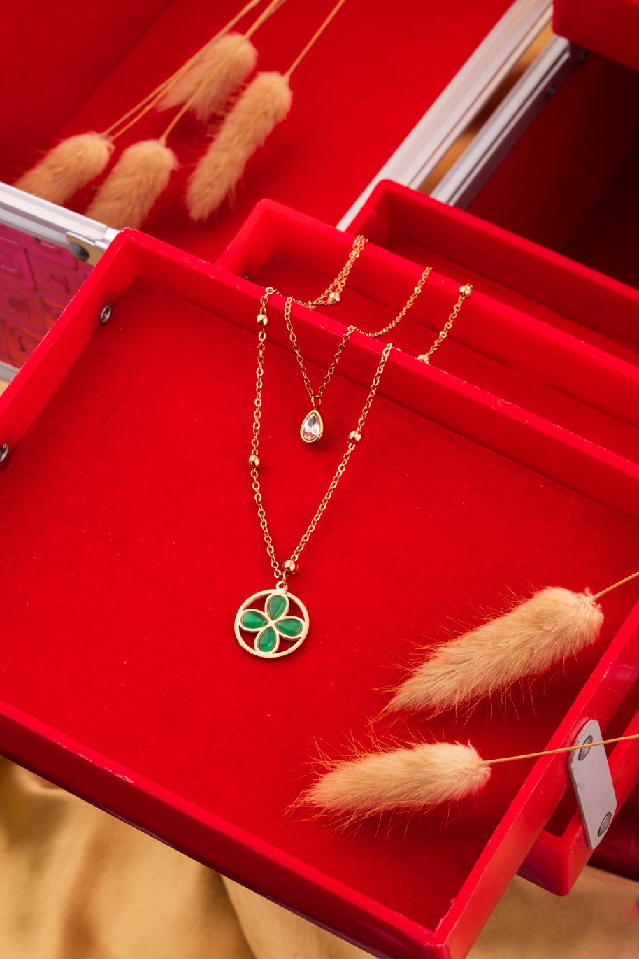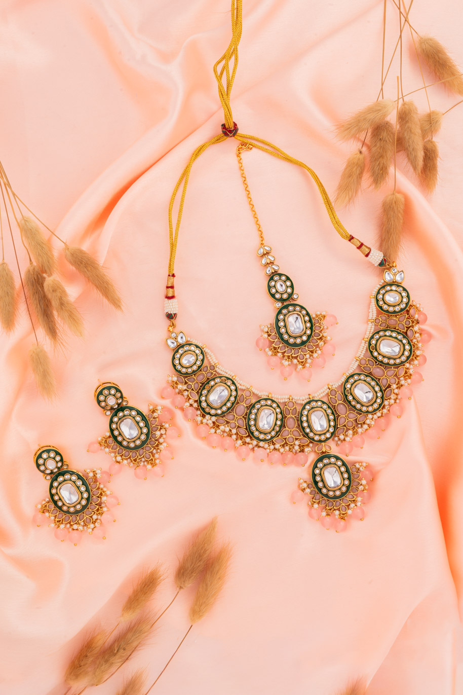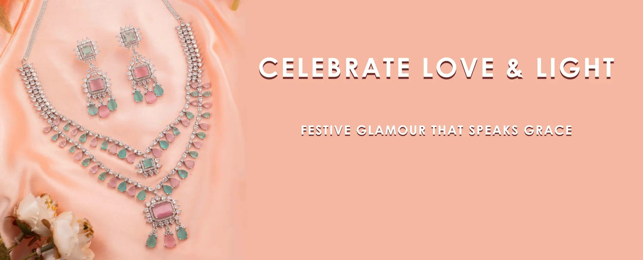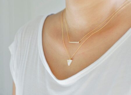 Mint and Pink White Gold Double Chain Necklace set