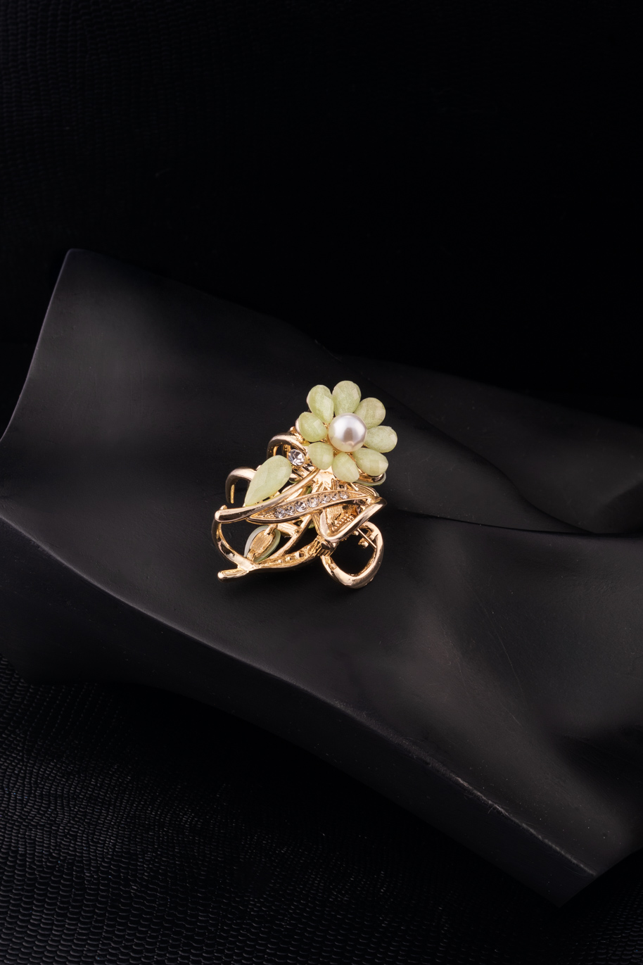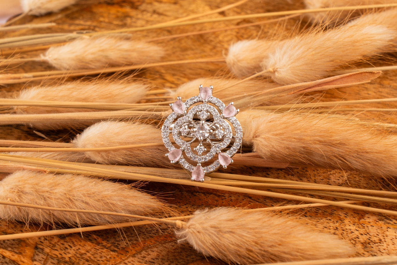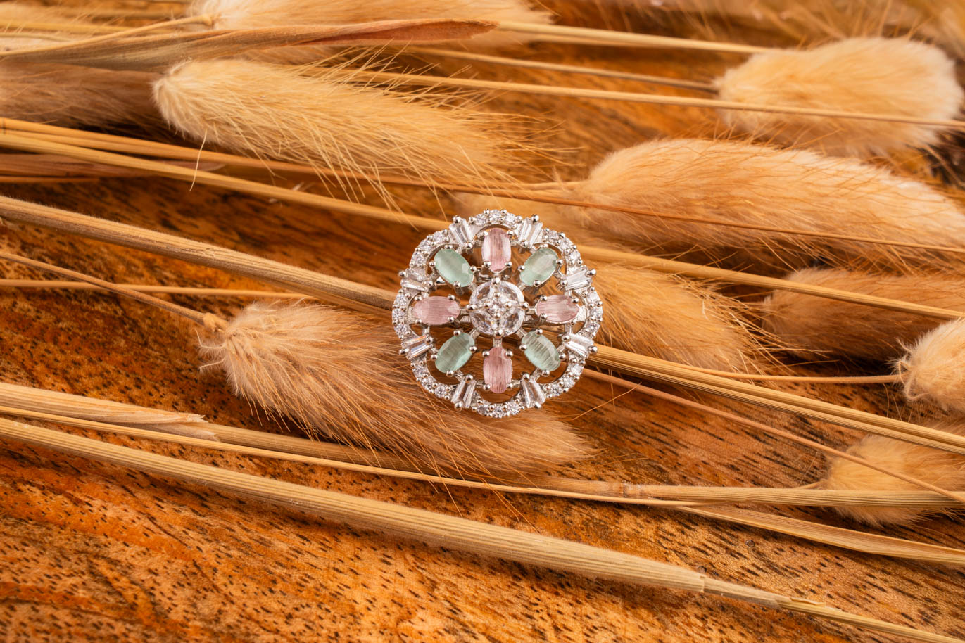 Mint Green crystals on White Gold Floral AD ring