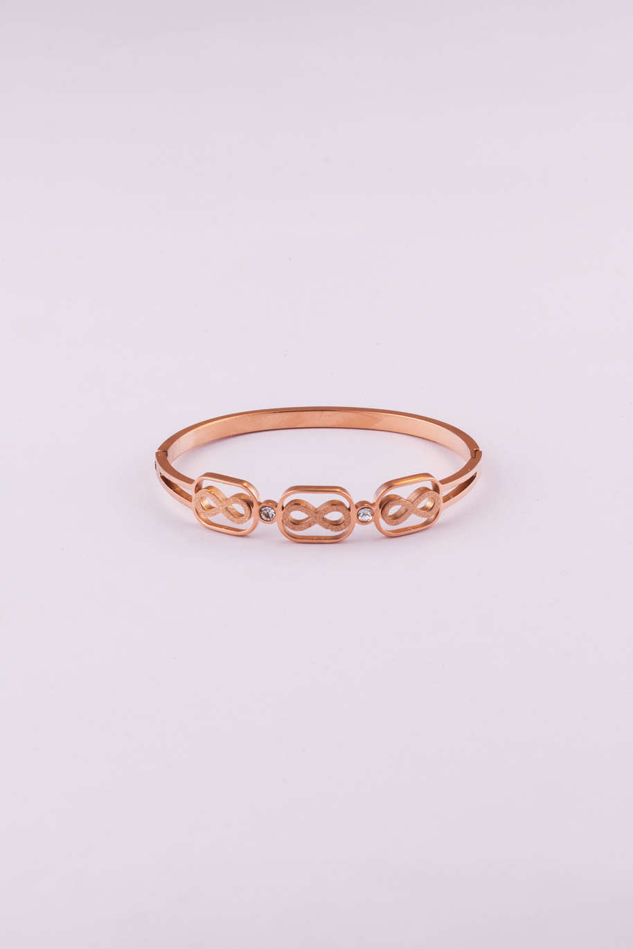 Triple round ring crossed design in white gold finish