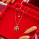 Green Square Crystal with AD on Square shaped Gold Necklace set