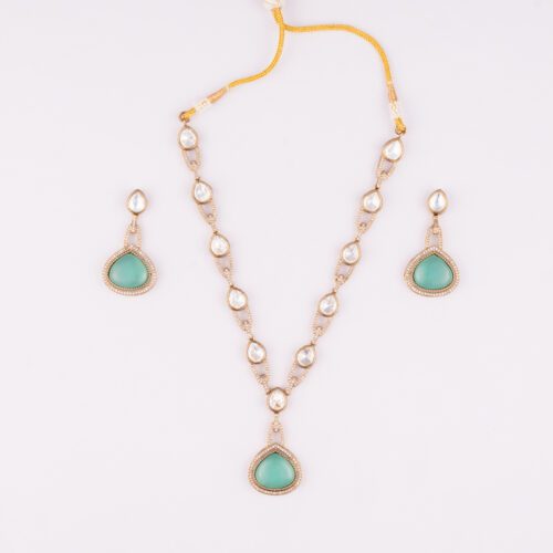 Water Drop Mint Green Moisannite Stone on Kundan set with Golden Base
