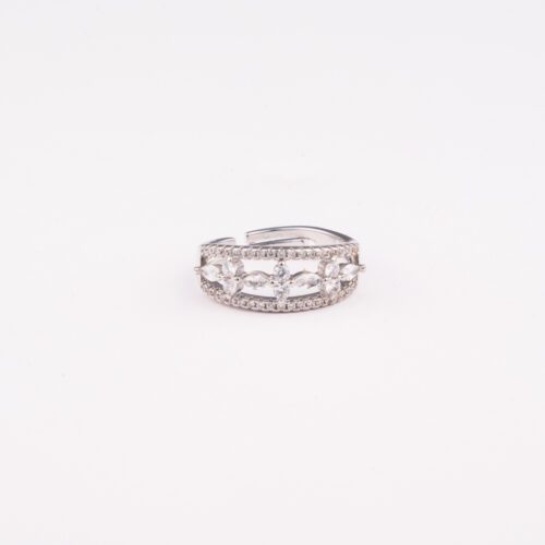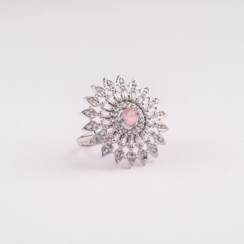 Mint Green crystals on White Gold Floral AD ring