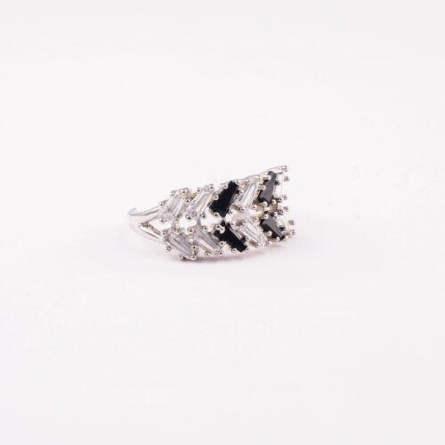 White Gold AD ring with Tiny Black Crystals Minimal and High Gently