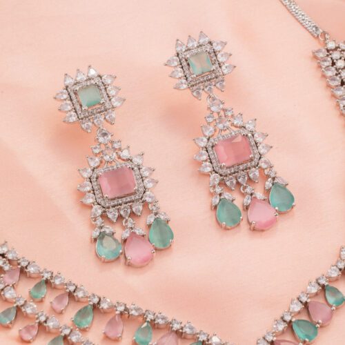 Mint and Pink White Gold Double Chain Necklace set