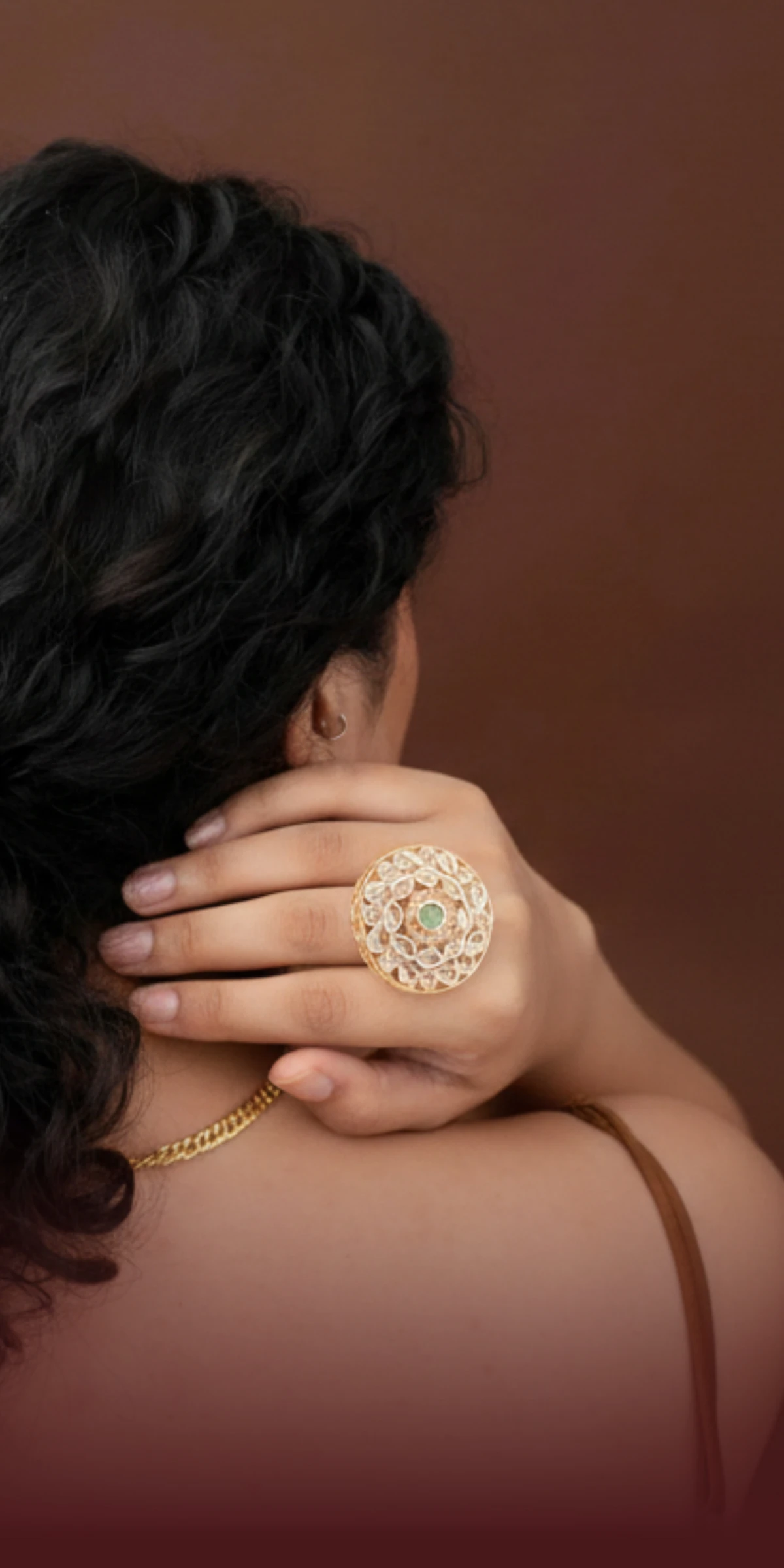 Blood Red Moisannite with Kundan on Gold Base suits all Ethnic to Mordern styles