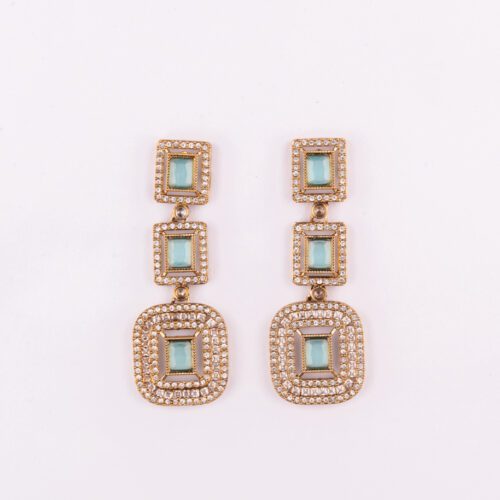 Aqua Crystals with AD and Square Gold Base Earrings Set