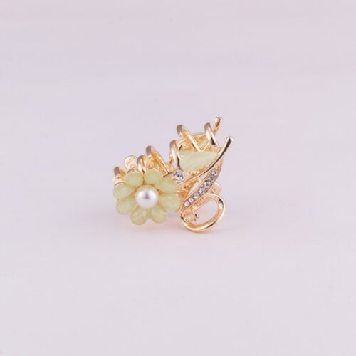 Pista Colored Pearl Flower embedded Golden Clutcher