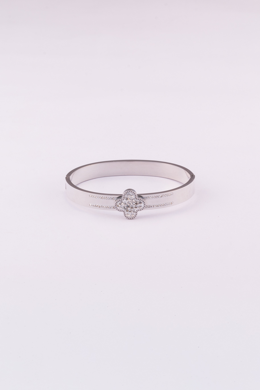 AD studded Flower Whitegold Sleek Bracelet
