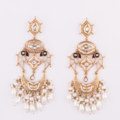 White Meena and Hanging Beads on Gold Earings set