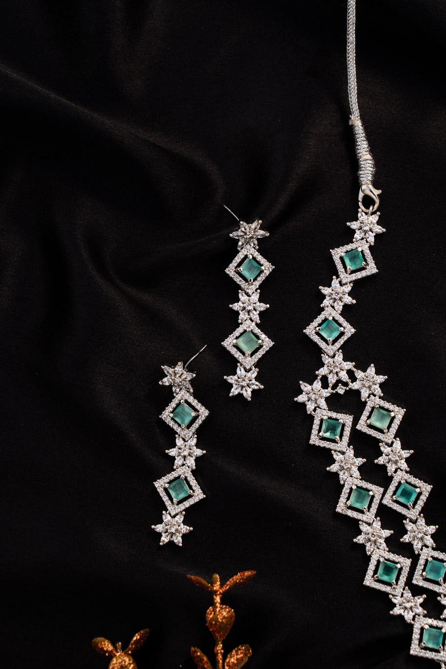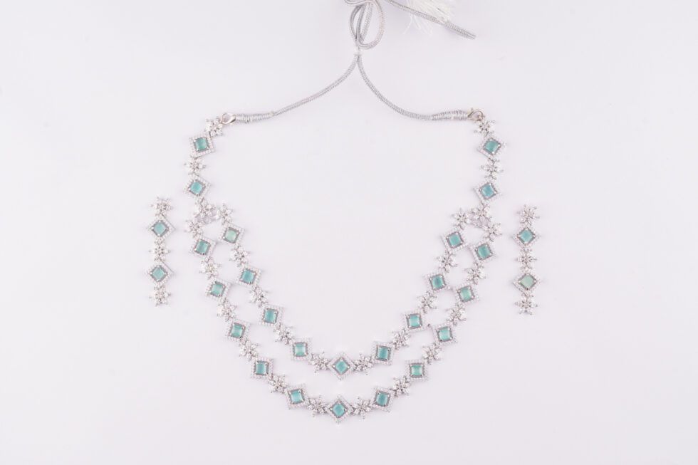 Timeless White Gold AD piece with Aqua blue Crystals to Embellish your attire
