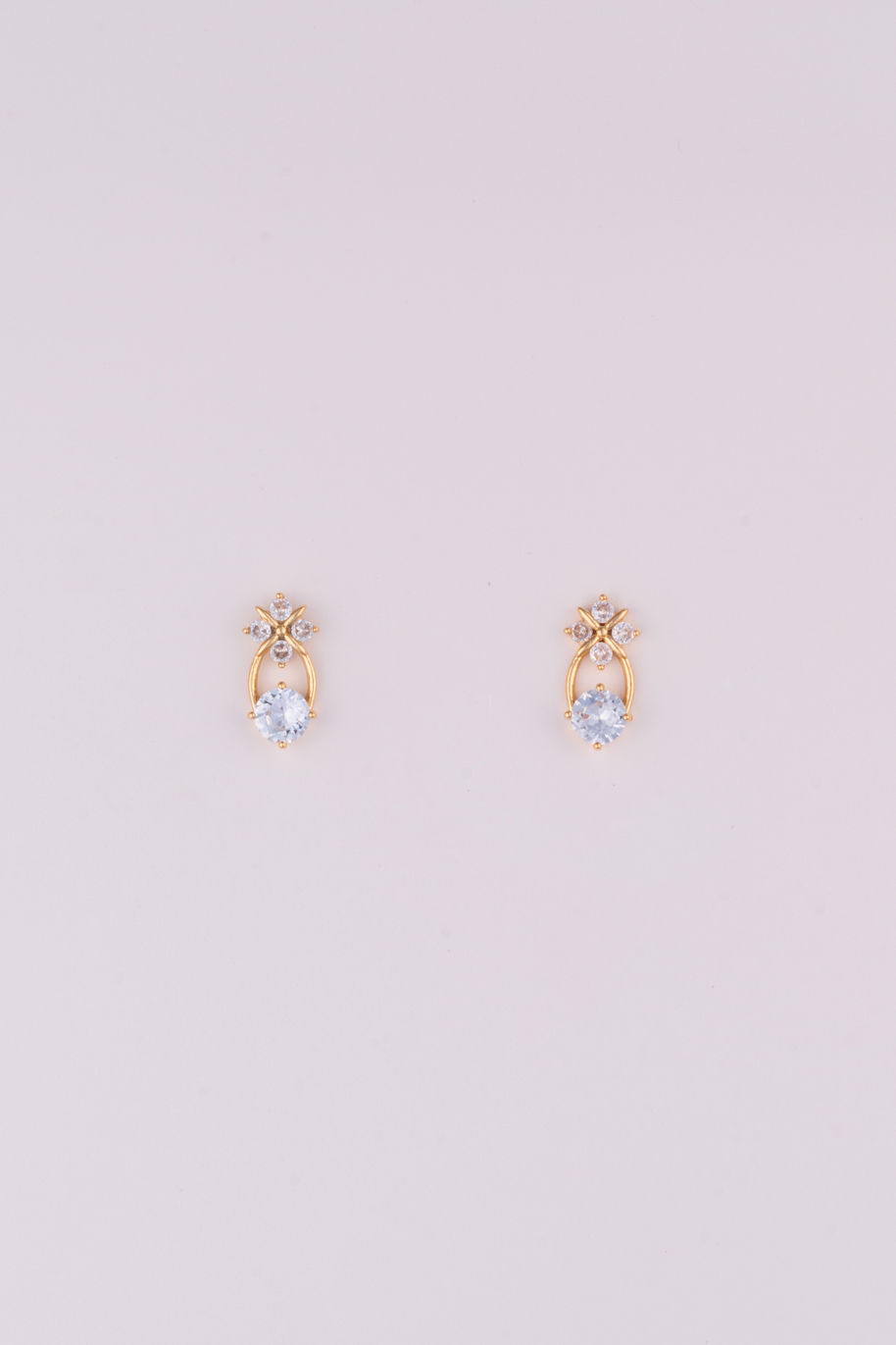 A symphony of light and elegance — these gold-toned earrings feature a serene blue crystal embraced by a graceful floral motif. Crafted with delicate precision, they radiate a quiet charm that feels both timeless and luxurious.