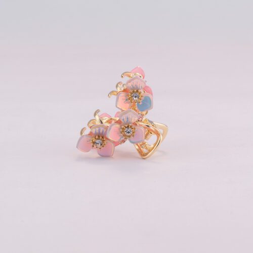 Pink Colored Pearl Flower embedded Golden Clutcher