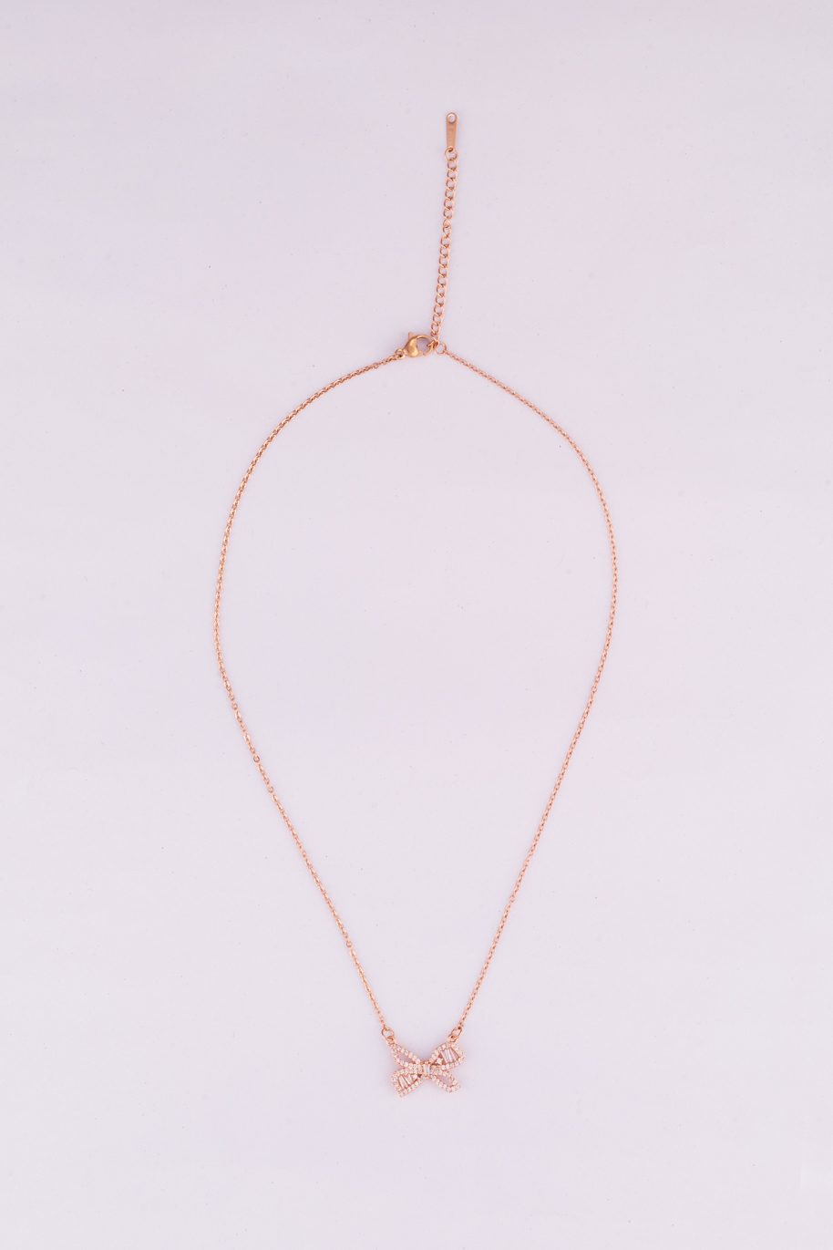 Stylish necklace featuring a delicate bow design embellished with sparkling AD stones