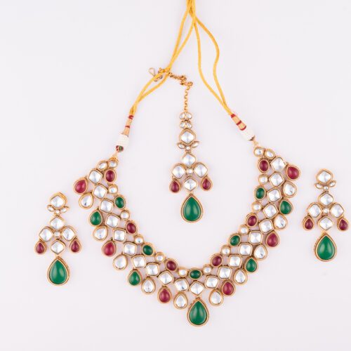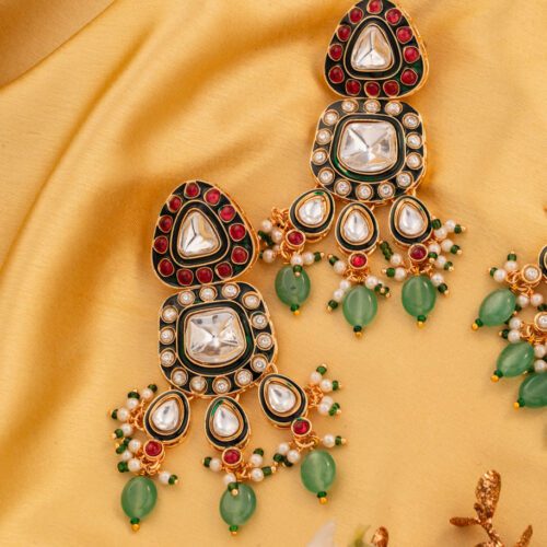 Black Moisannite Stone with Kundan and AD on Gold designed for every occasion