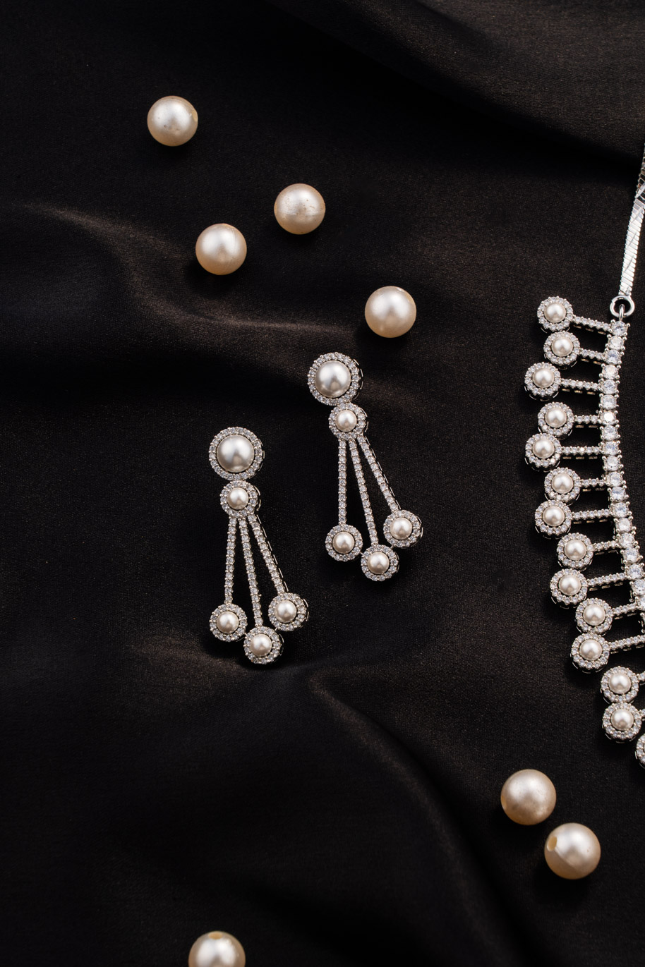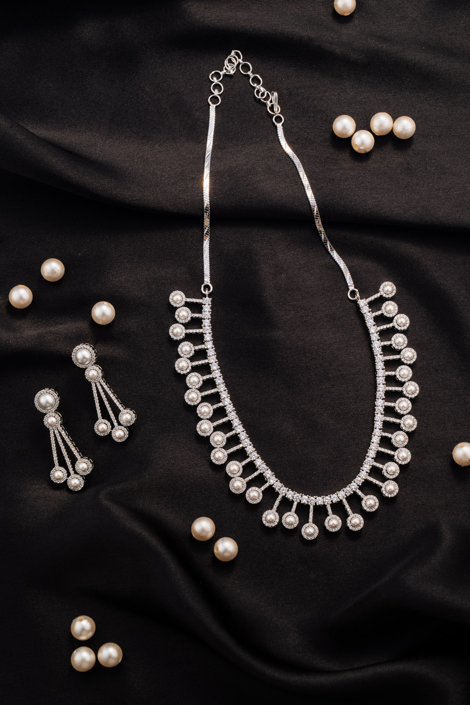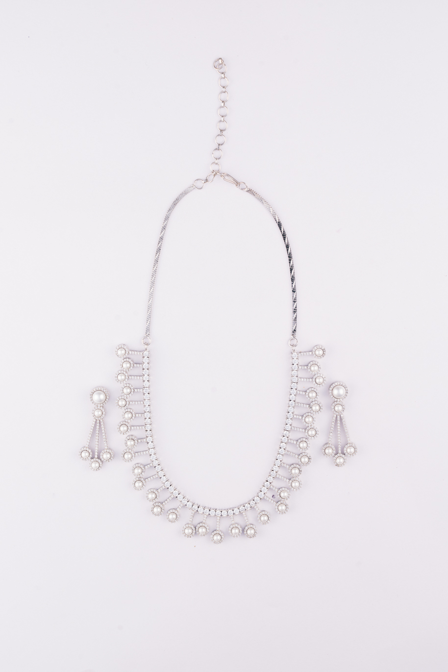 Elegant Pearls with AD all over set on White Gold Polish