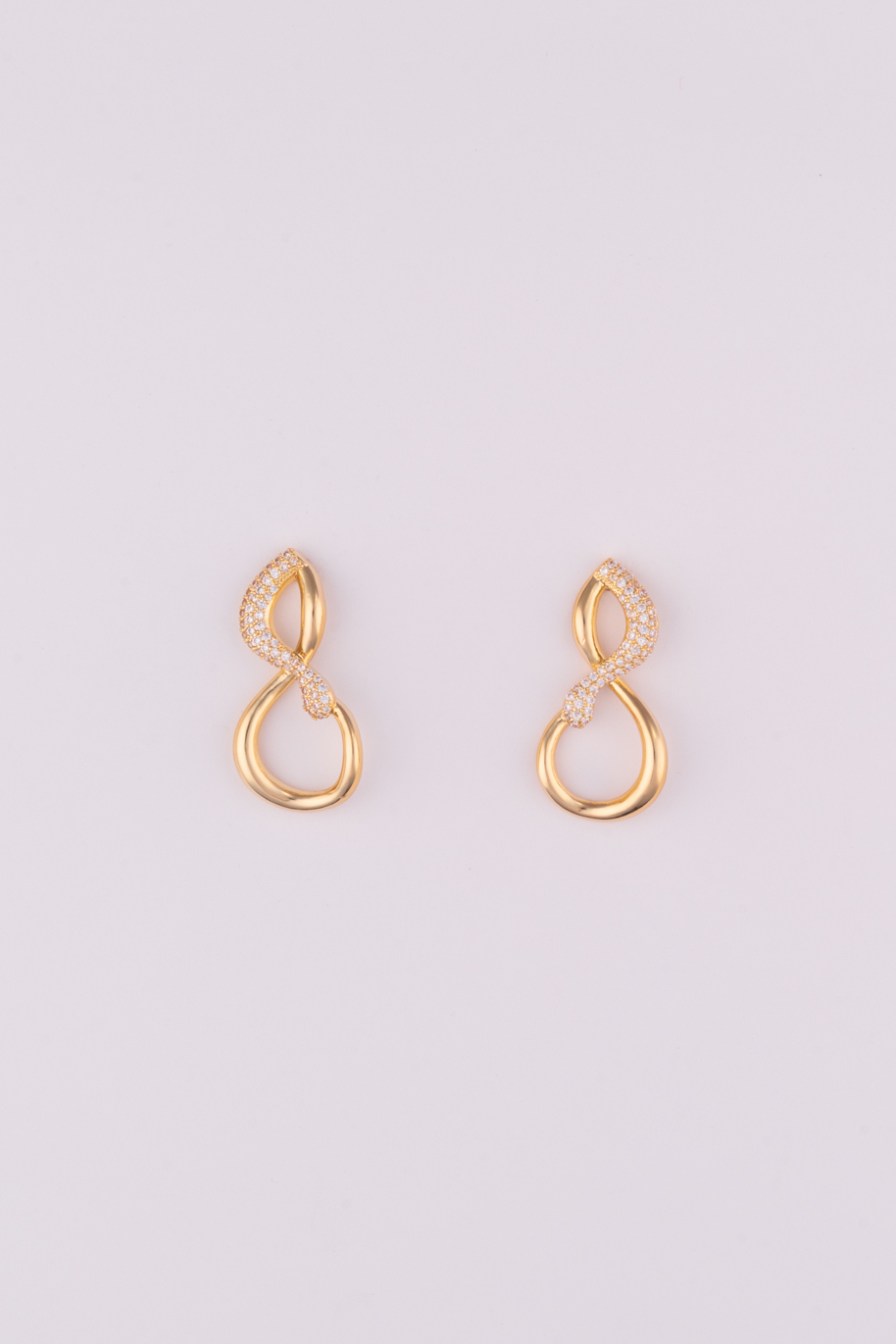 Celebrate endless style with these elegant and meaningful stud earrings. The fluid figure-eight infinity symbol is sculpted in polished gold-tone metal. One gentle curve is beautifully paved with a ribbon of brilliant cubic zirconia crystals, adding refined sparkle. These petite yet powerful earrings are perfect for everyday wear and make a wonderful gift to symbolize everlasting connection.