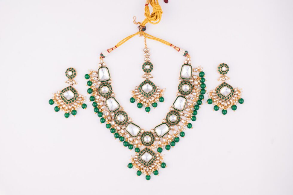 Be the first to review “Green Beads with Kundan on Gold base designed for every Ethnic wear” Cancel reply