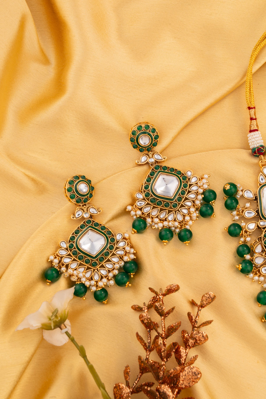Green Beads with Kundan on Gold base designed for every Ethnic wear