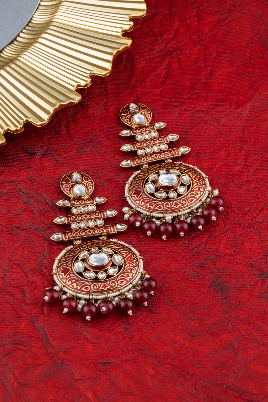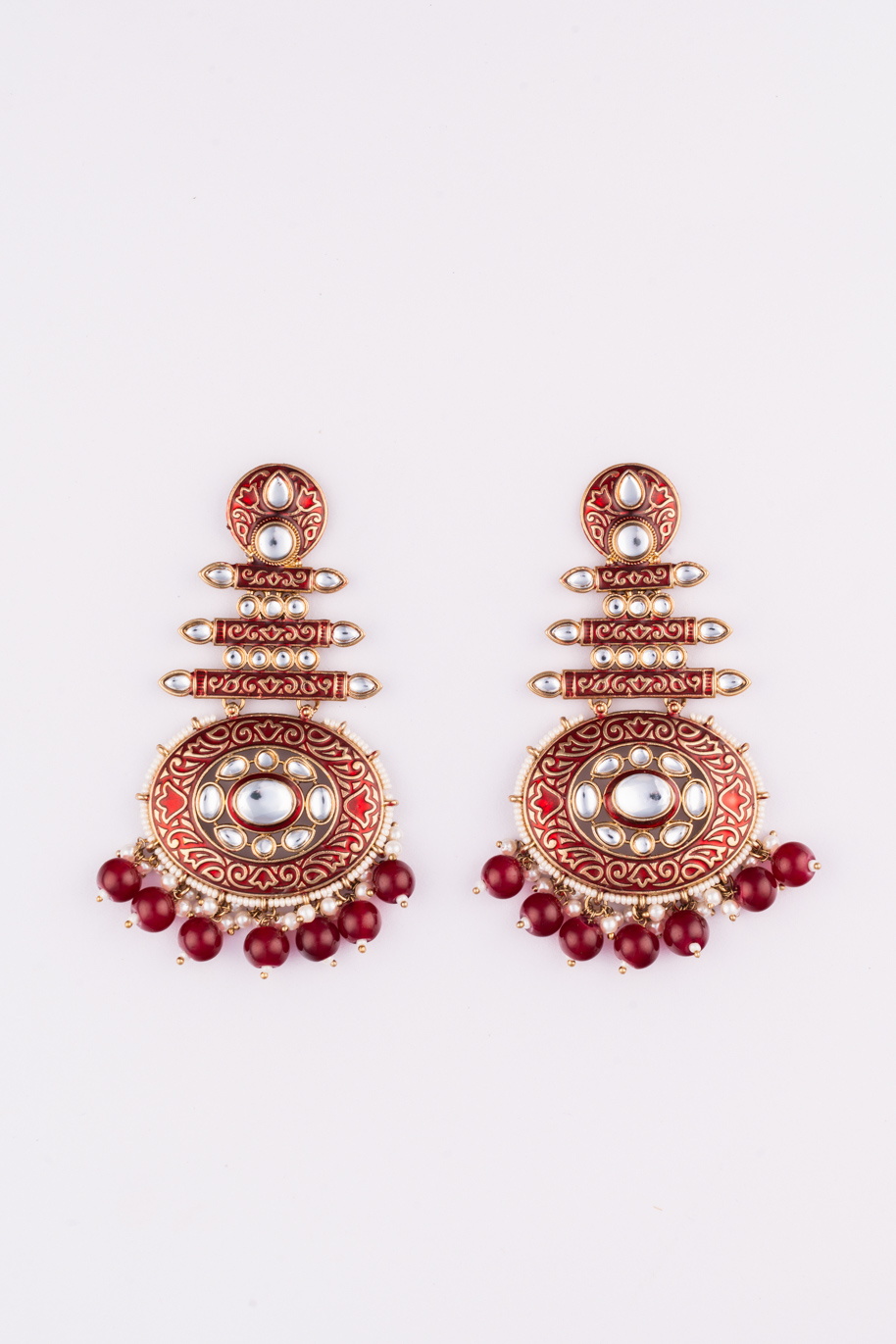 This item: Maroon Beads on Antique Kundan Gold Earings set