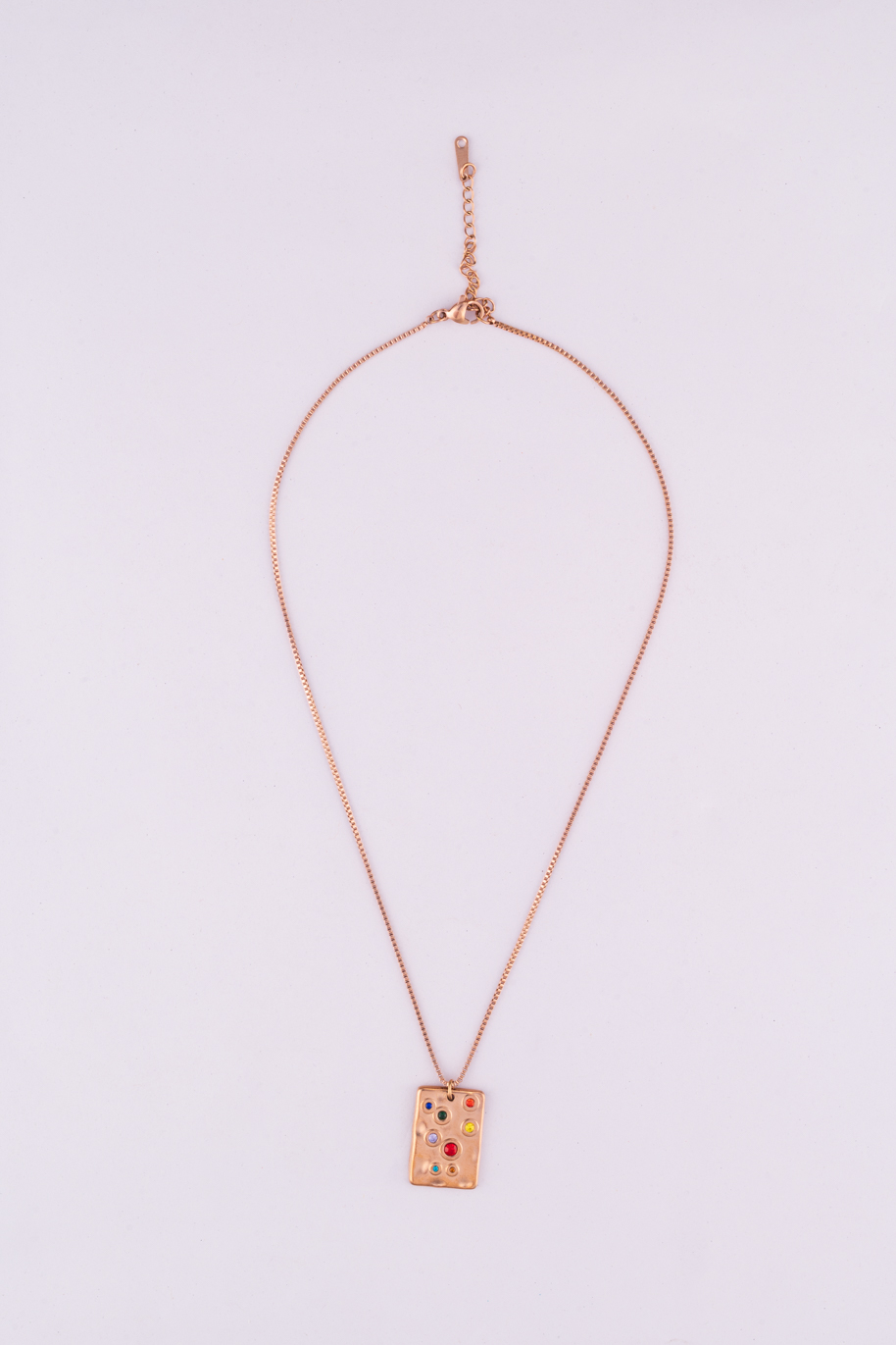 Elegant gold chain featuring a pendant adorned with multicolor crystals