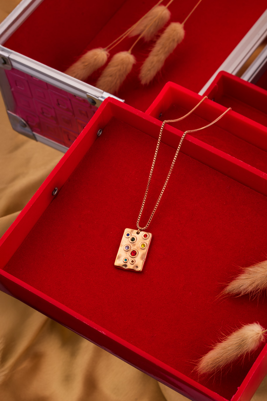 Be the first to review “Minimal Designer Gold Necklace with Multicolor Crystals On Gold pendant” Cancel reply