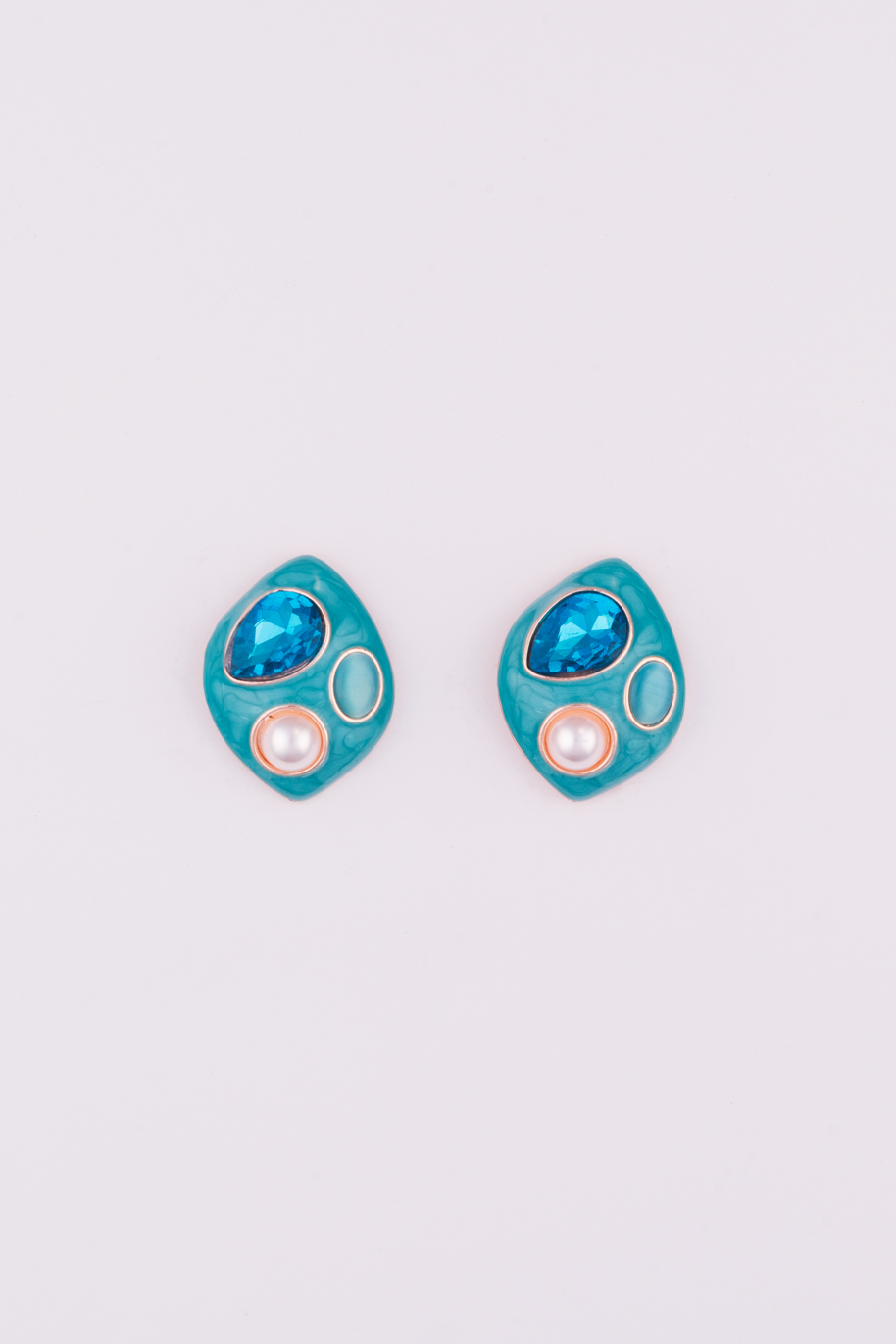 - Shape & Base: Each earring has a unique, organic or irregular teardrop shape and is covered in a glossy teal or turquoise enamel.