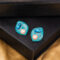 - Shape & Base: Each earring has a unique, organic or irregular teardrop shape and is covered in a glossy teal or turquoise enamel.