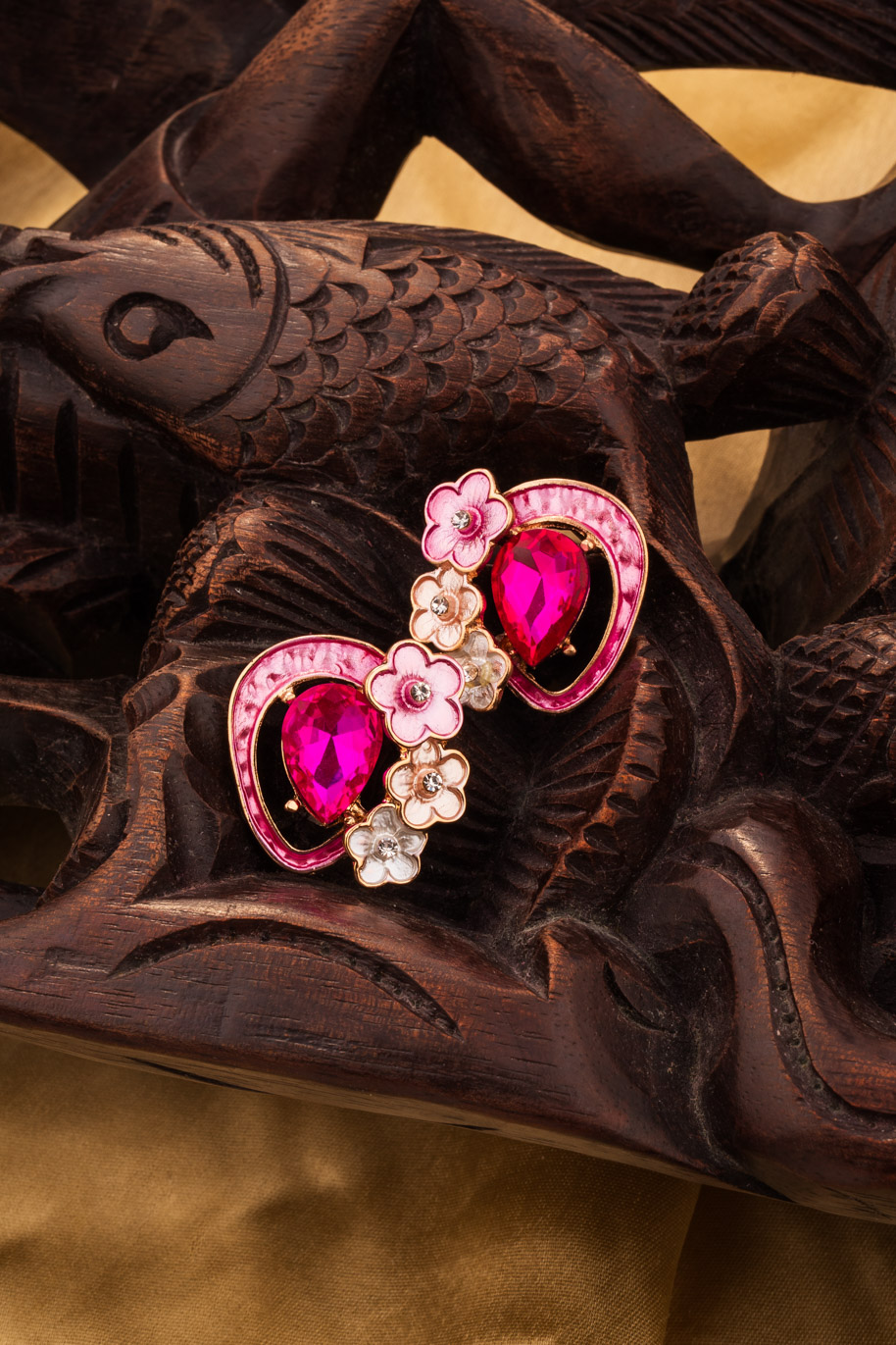 Add a touch of elegance and charm with these Pink Blossom Sparkle Earrings, designed to make every moment shine. Featuring a vibrant fuchsia teardrop stone set in a soft rose-gold frame, these earrings are adorned with delicate enamel flowers and tiny crystals that capture light beautifully.