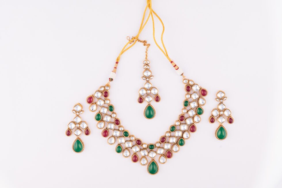 Be the first to review “Red and Green Stones incised with Gold Kundan suits all occasions” Cancel reply