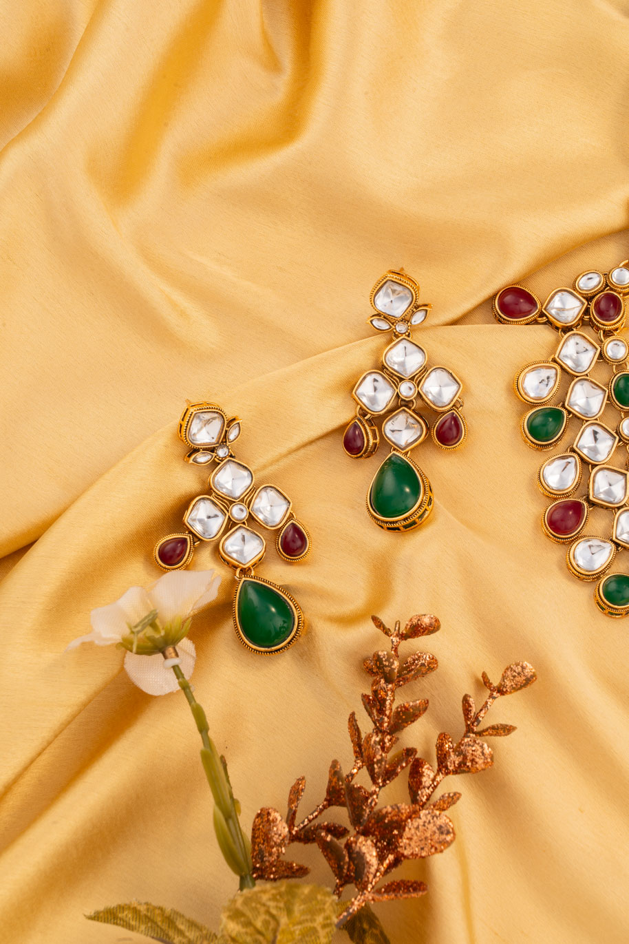 Red and Green Stones incised with Gold Kundan suits all occasions