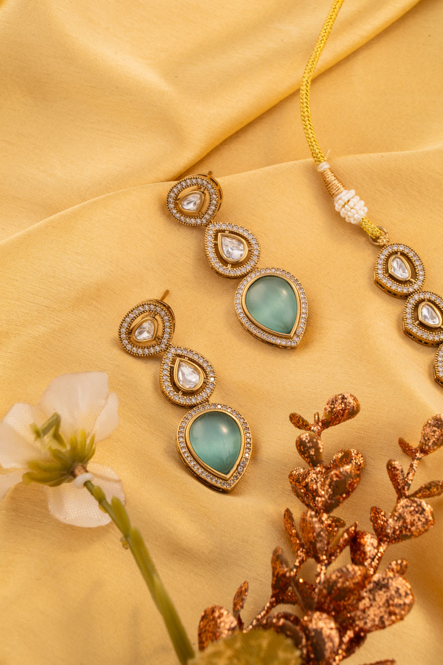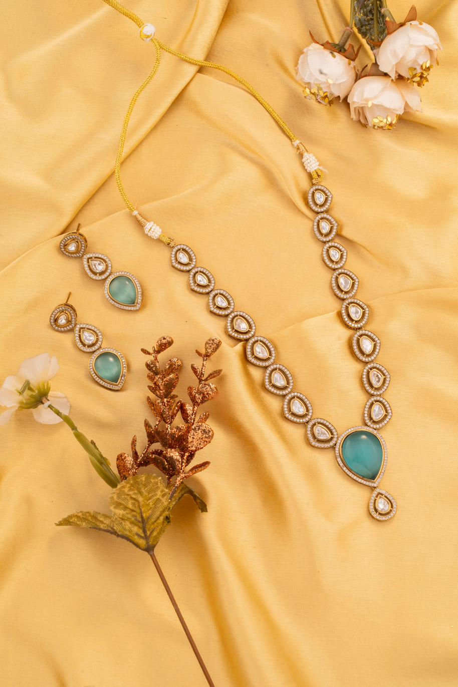 Sky Blue Mosiannite Gem Embellish the Gold Kundan set gives an aesthetic look