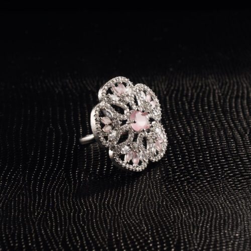 Sparkling Rose Pink AD White Gold Adjustable Ring