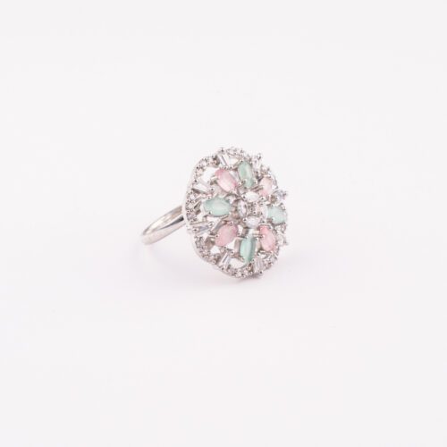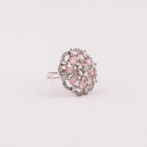 Sparkling Rose Pink AD White Gold Adjustable Ring