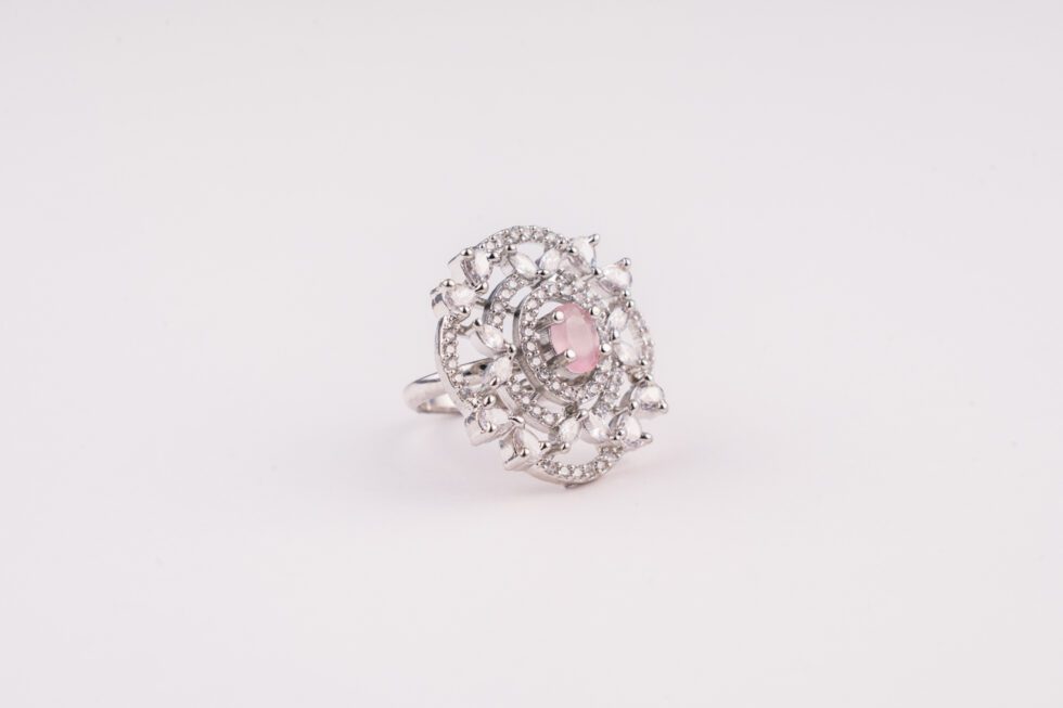 Be the first to review “Sparkling Rose Pink AD White Gold Adjustable Ring” Cancel reply