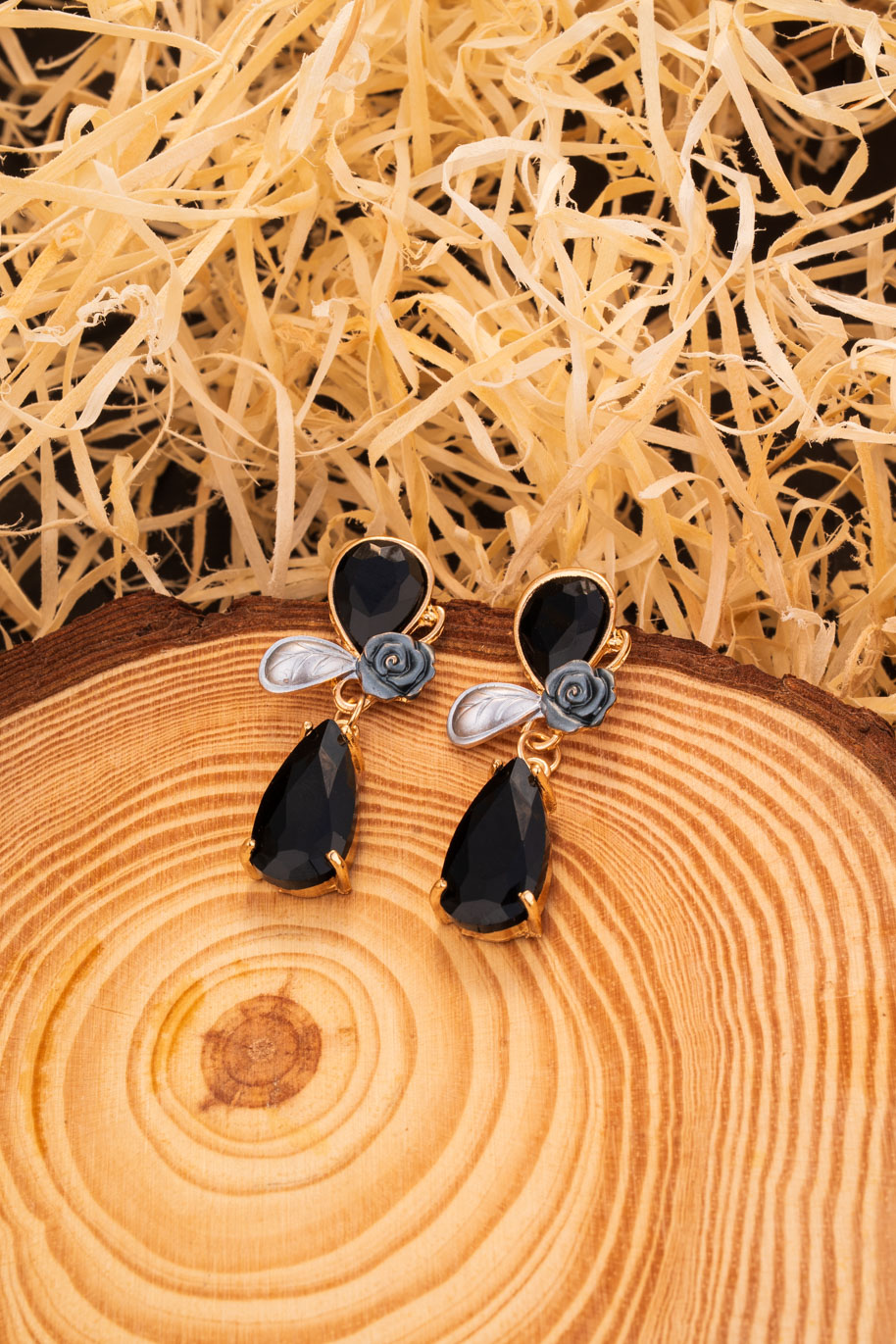 Discover the artistry of these unique dangle earrings, where dark sophistication meets delicate charm.