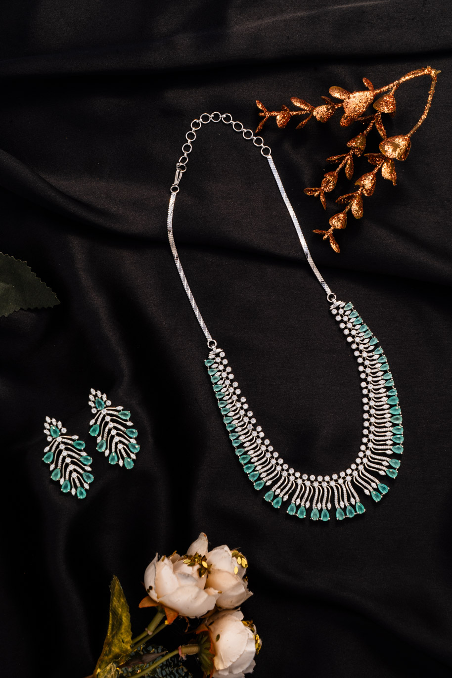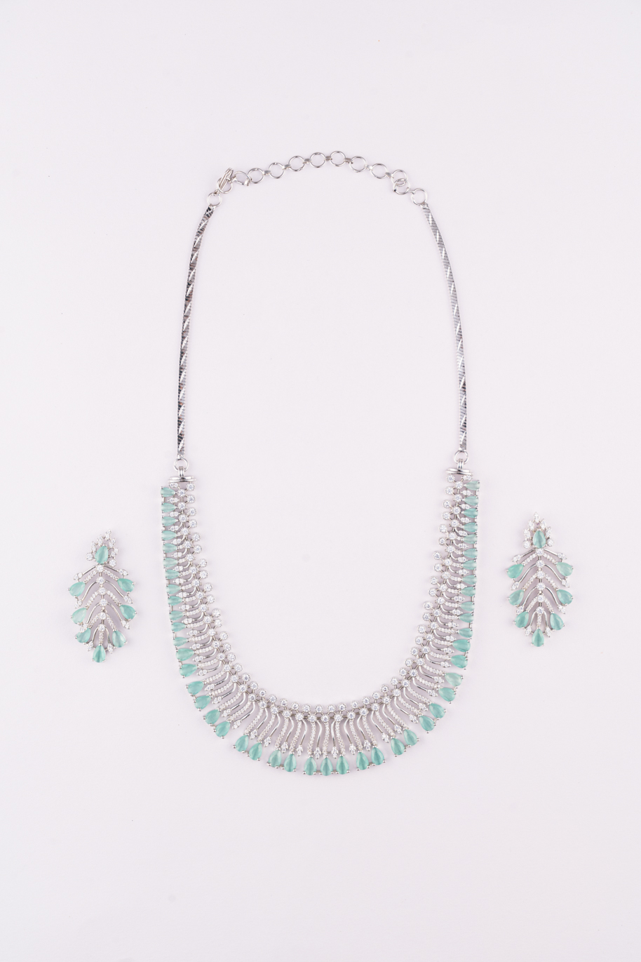 Timeless White Gold AD piece with Aqua blue Crystals to Embellish your attire