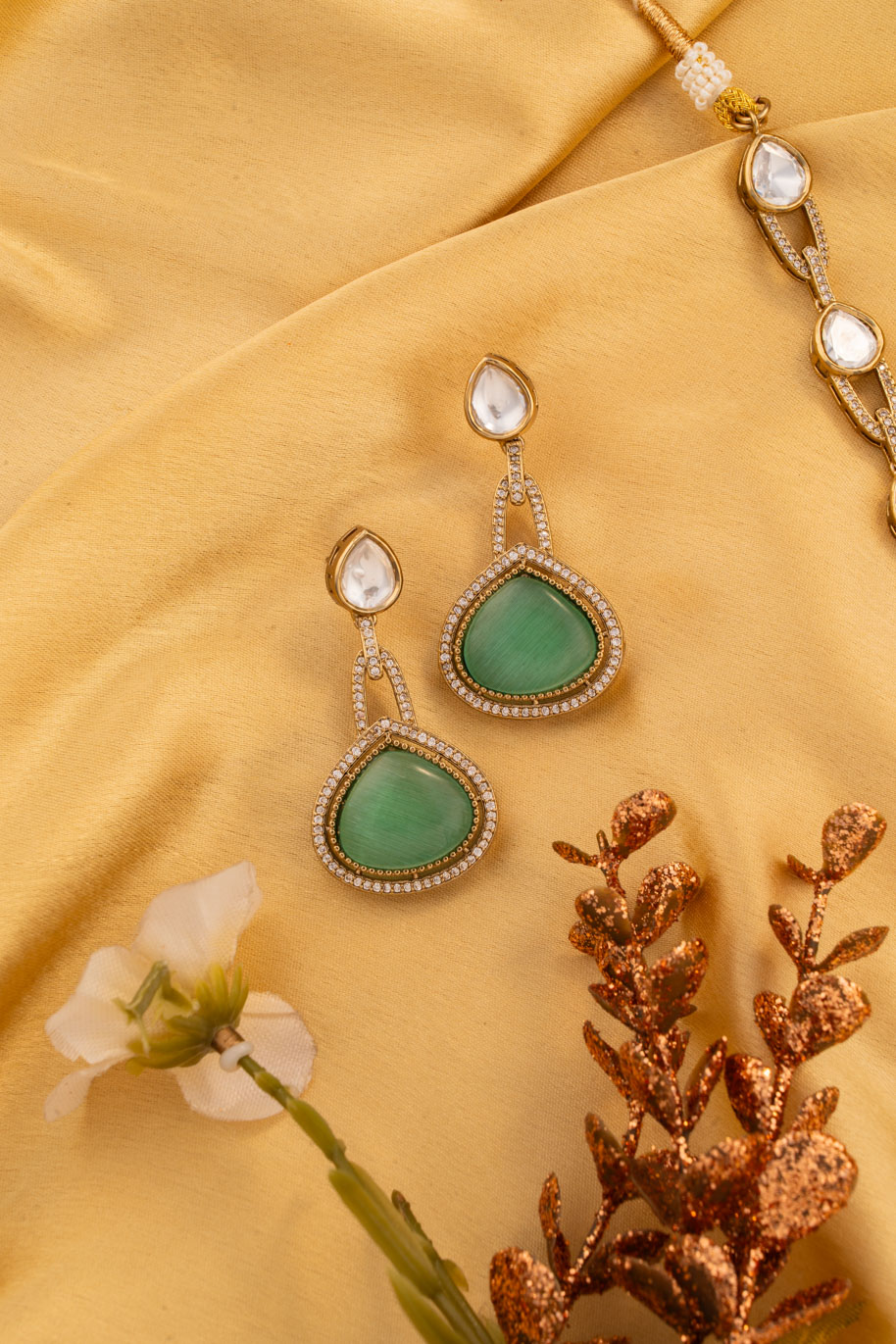 Water Drop Mint Green Moisannite Stone on Kundan set with Golden Base