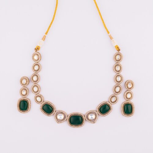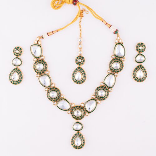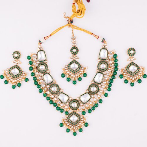 Green Beads with Kundan on Gold base designed for every Ethnic wear
