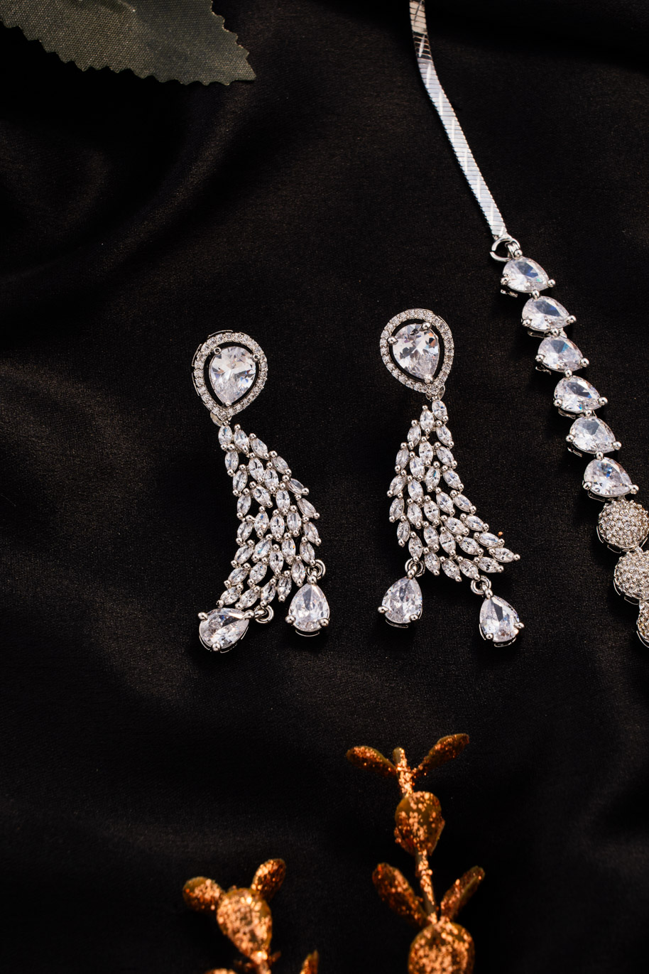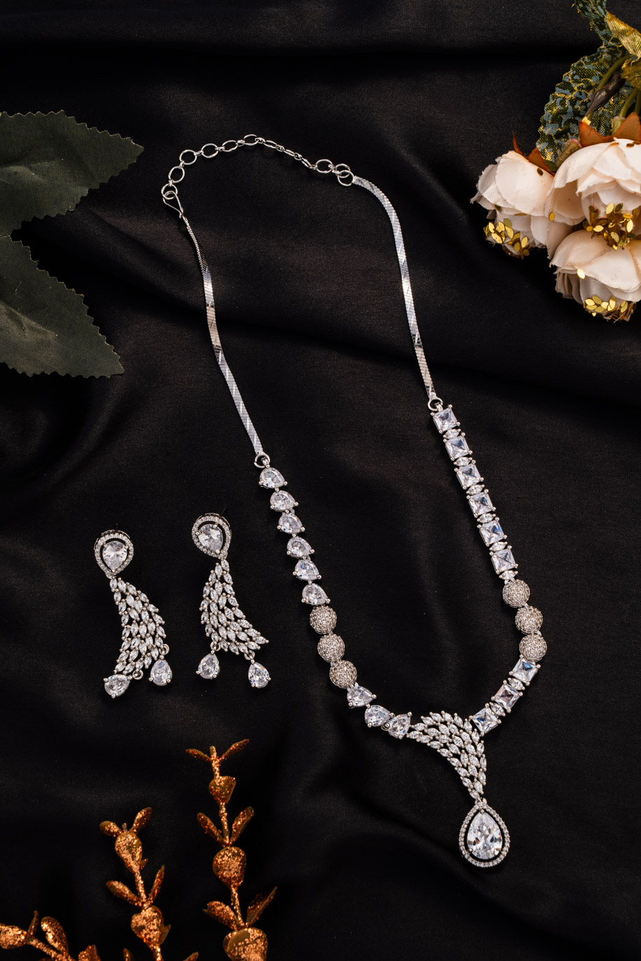 Elegant white American Diamond (AD) set with handcrafted crystals