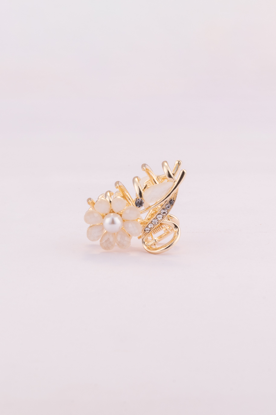 Classic golden clutcher adorned with elegant white pearls and floral accents