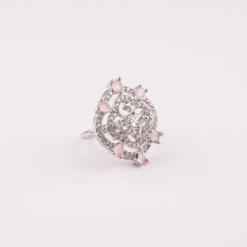 Mint Green crystals on White Gold Floral AD ring