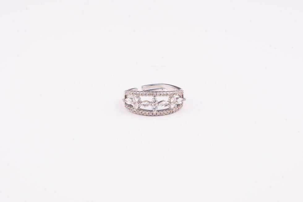 • Elegant white gold adjustable ring adorned with sparkling AD stones