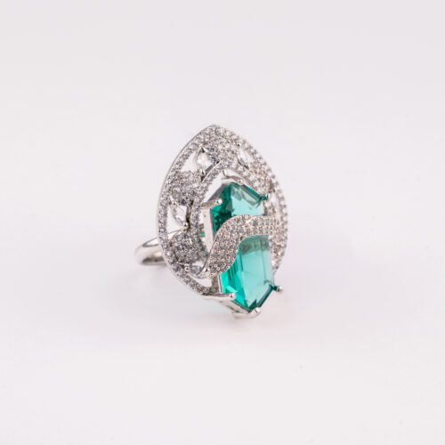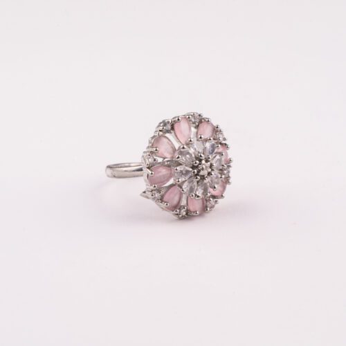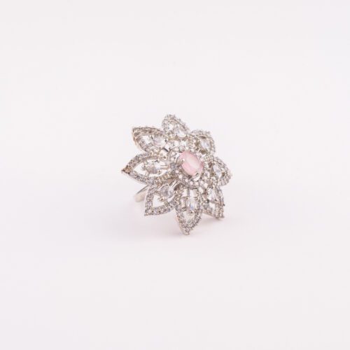 • Elegant white gold adjustable ring adorned with sparkling AD stones