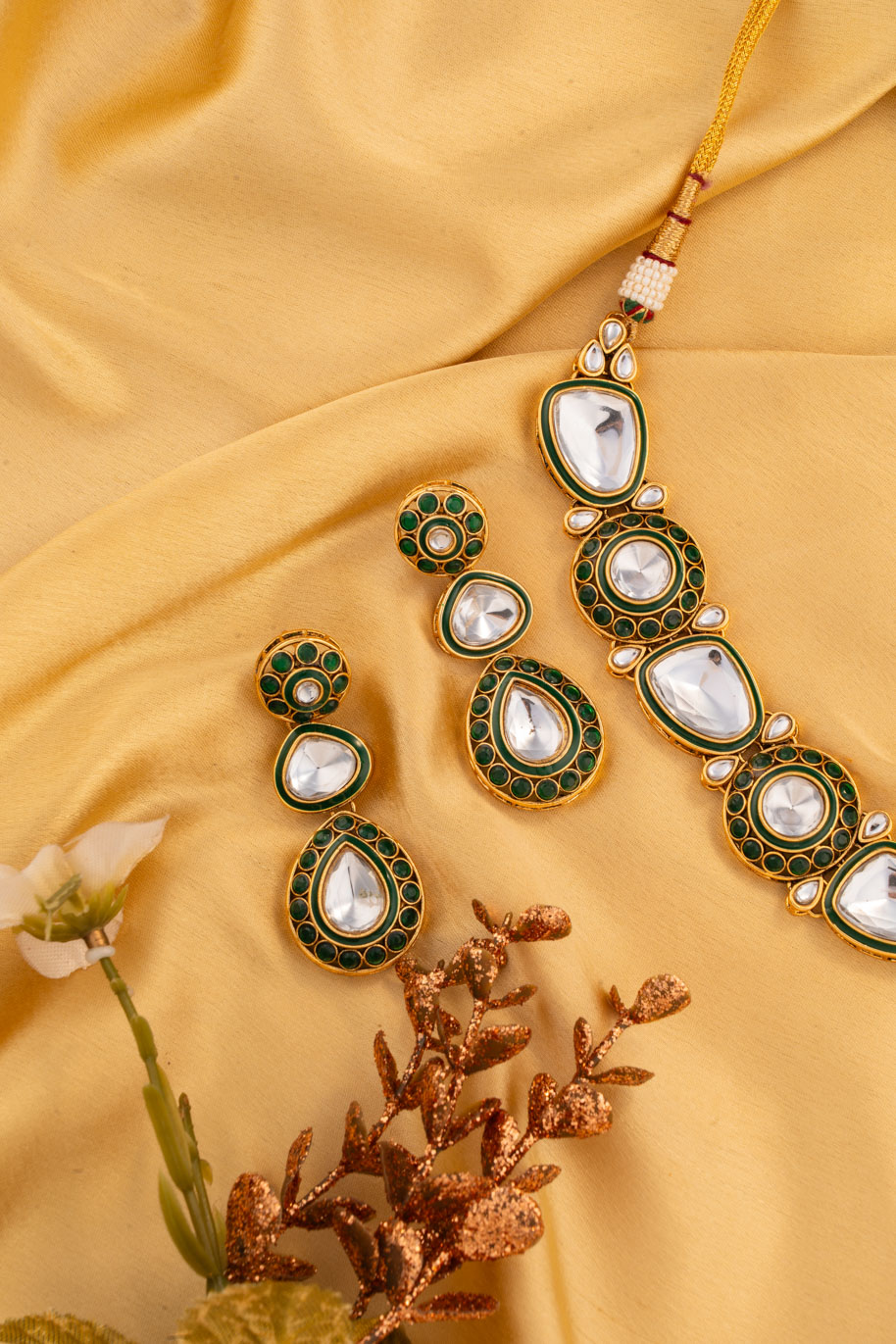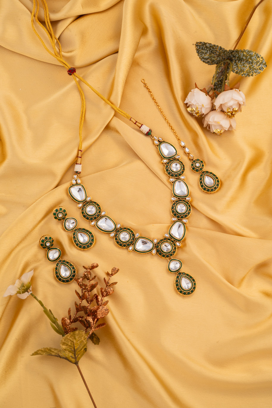 Exquisite Green Moisannite with Kundan on AD and Gold polish