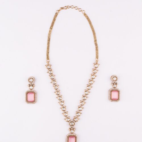 Sky Blue Beads with Kundan paired with Jhumki on Gold Base